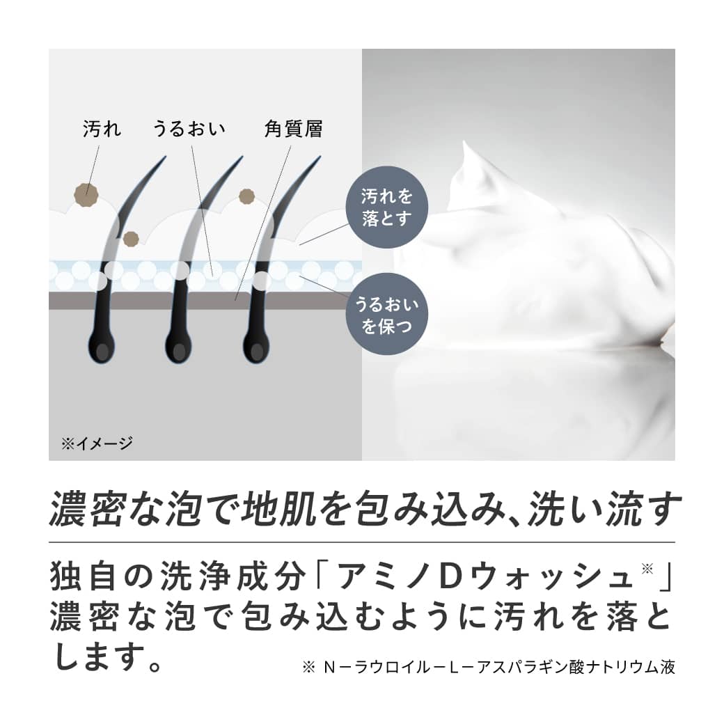 濃密な泡で地肌を包み込み、地肌や毛髪の汚れを除去。
